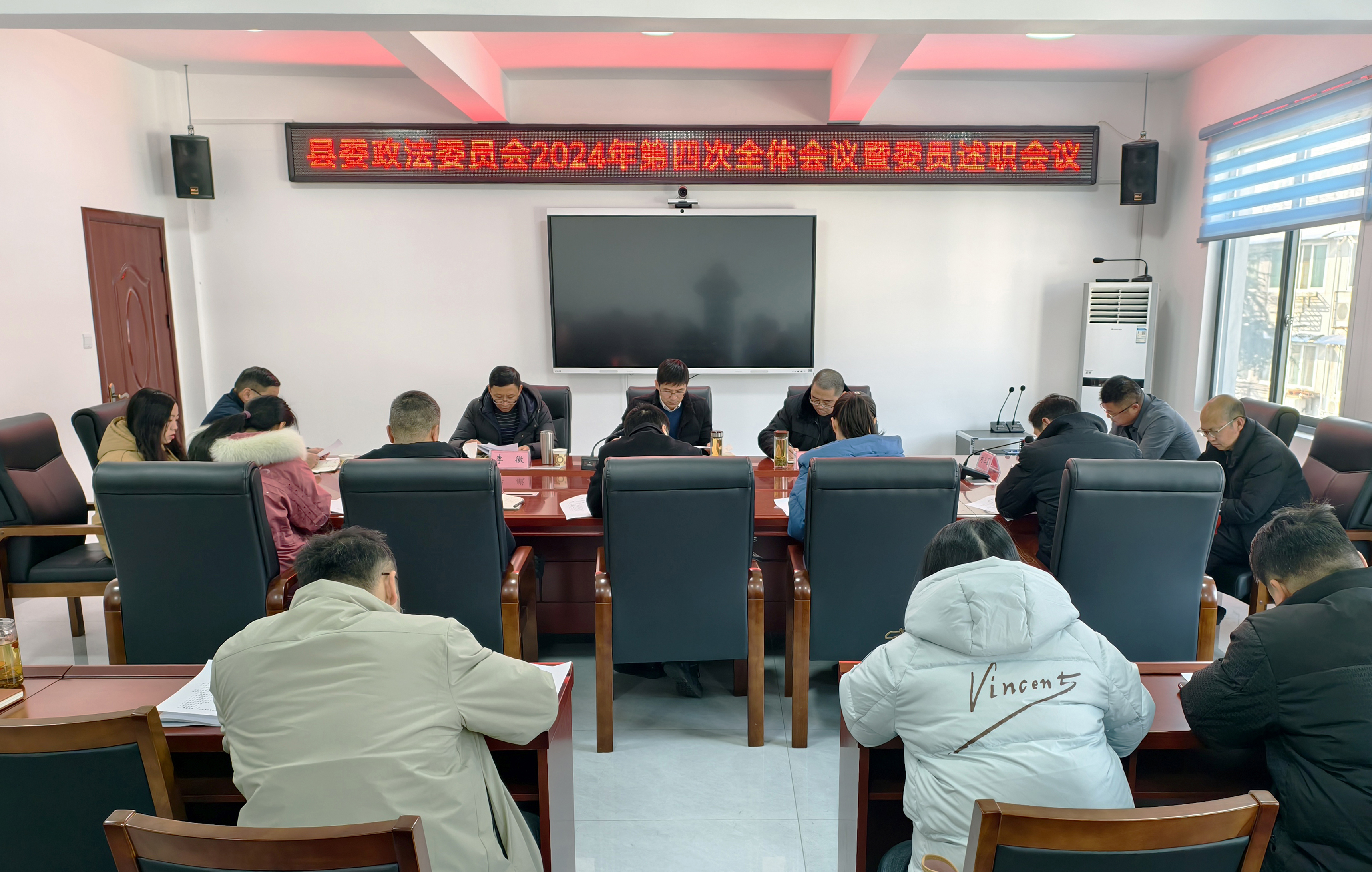 12月31日下午,县委政法委员会2024年第四次全体会议召开,县委常委、政法委书记吴敏主持会议并讲话,县委政法委员会全体委员参加会议。县政法各单位有关负责同志、县委政法委机关全体干部列席会议。