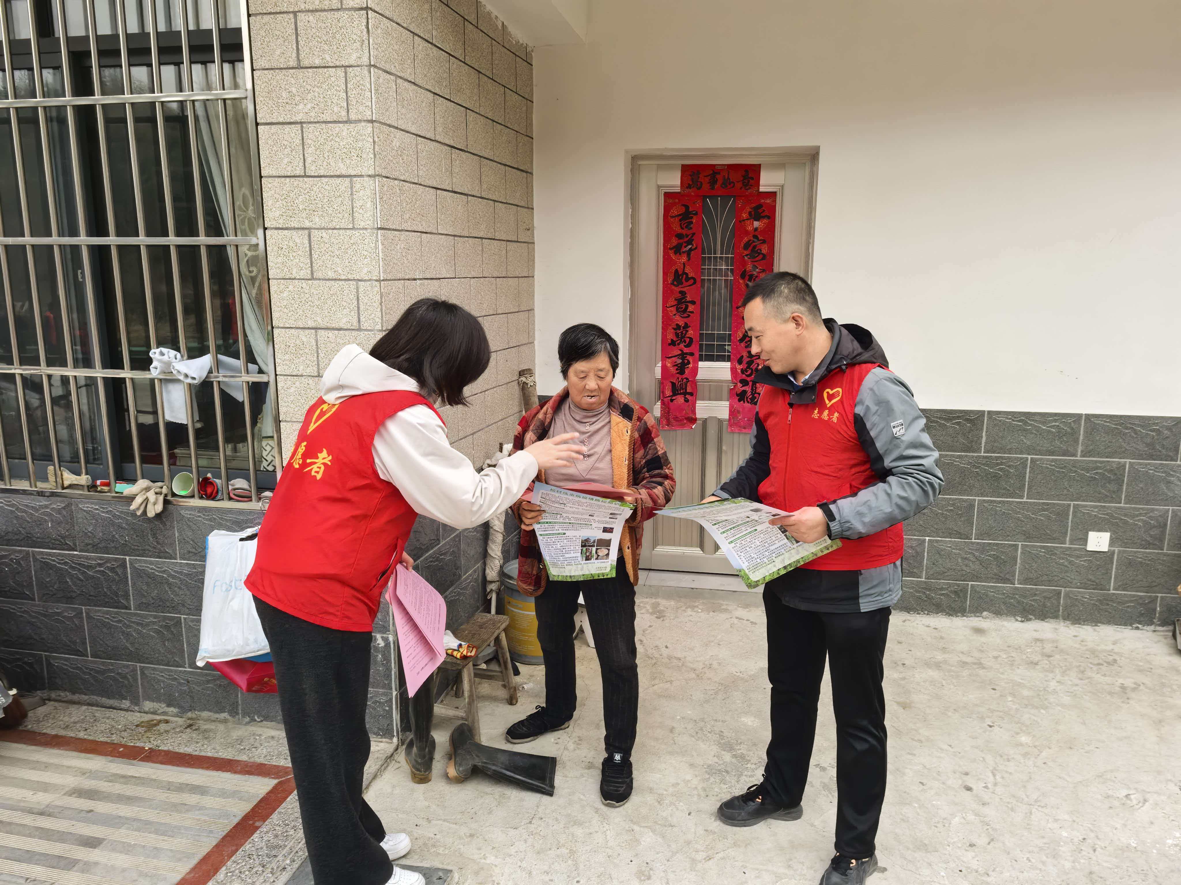 活动中,党员志愿者分组前往城东社区后冲、新民、复兴等居民组,采取“面对面”交流的方式,向居民详细解读烟花爆竹禁燃禁放有关规定,结合真实案例说明违规燃放可能带来的安全与环保危害,引导居民自觉遵守禁放政策。志愿者们还同步发放了《禁燃禁放倡议书》以及松材线虫防治、防范电信诈骗等宣传资料,耐心解答居民疑问,提醒大家加强日常防范意识。