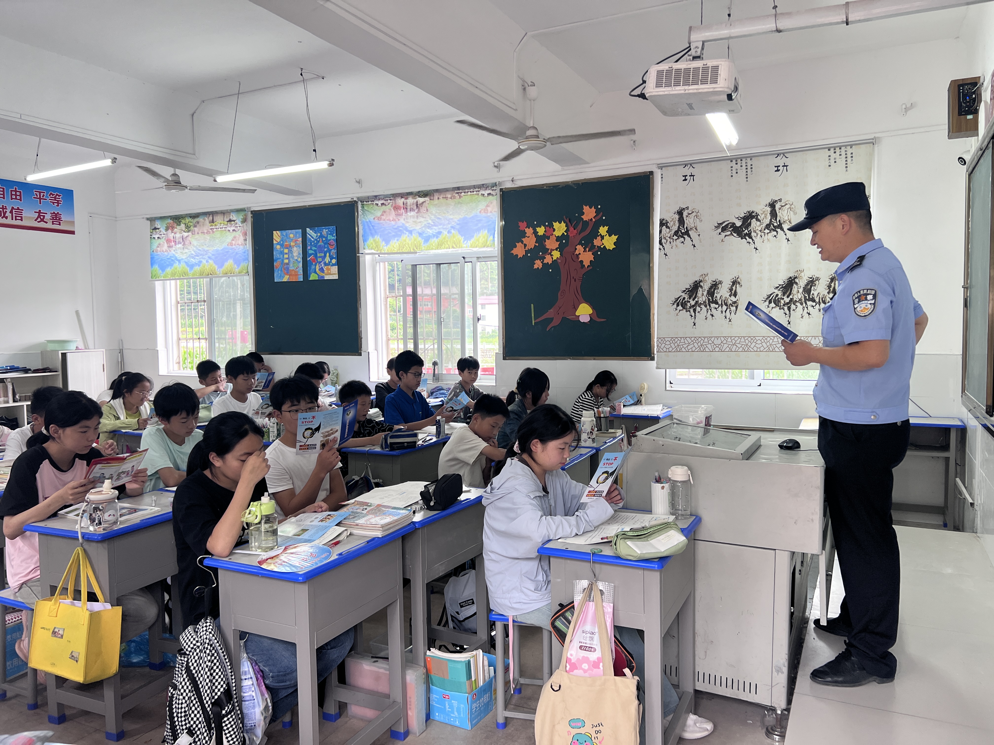 讲解结束后,禁毒志愿者发放禁毒、防电信诈骗和防溺水宣传手册,倡导学生们一起做禁毒宣传的“传播者”,将“禁毒声音”传播到身边更多的人,引导学生坚决对任何毒品说不。此次活动进一步增强了青少年防毒拒毒的意识和能力,为创建无毒校园、守护青少年健康成长奠定了坚实基础。