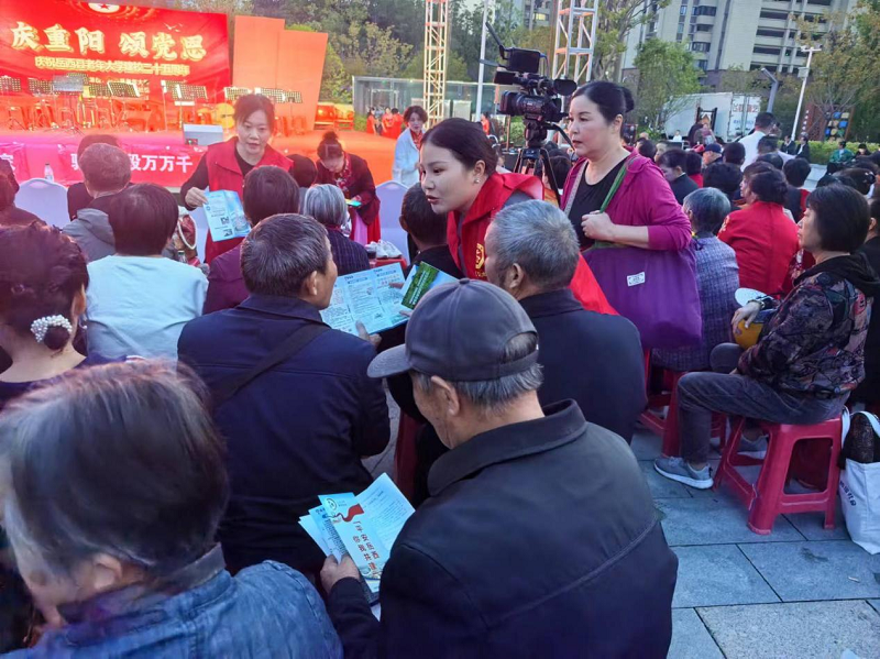 活动现场,天仙河公园张灯结彩,洋溢着浓厚的节日氛围。文艺汇演节目丰富多彩,有舞蹈、合唱、诗词朗诵等,吸引了众多社区居民前来观看。社区中老年文艺爱好者们纷纷登台献艺,精彩的表演博得了观众的阵阵掌声。而在欢庆节日的同时,社区党委组织党员志愿者也在汇演现场通过发放反邪教宣传单的形式,向居民们介绍了邪教的种类、特征和危害,以及如何防范邪教侵害,使居民们对邪教有了更加清晰的认识,鼓励居民积极参与反邪教宣传活动中。同时,志愿者们提醒居民要加强防范,用科学方法来生活,自觉远离邪教,鼓励辖区居民积极上报相关线索,参与到社会治理中来,营造人人反邪的良好氛围。