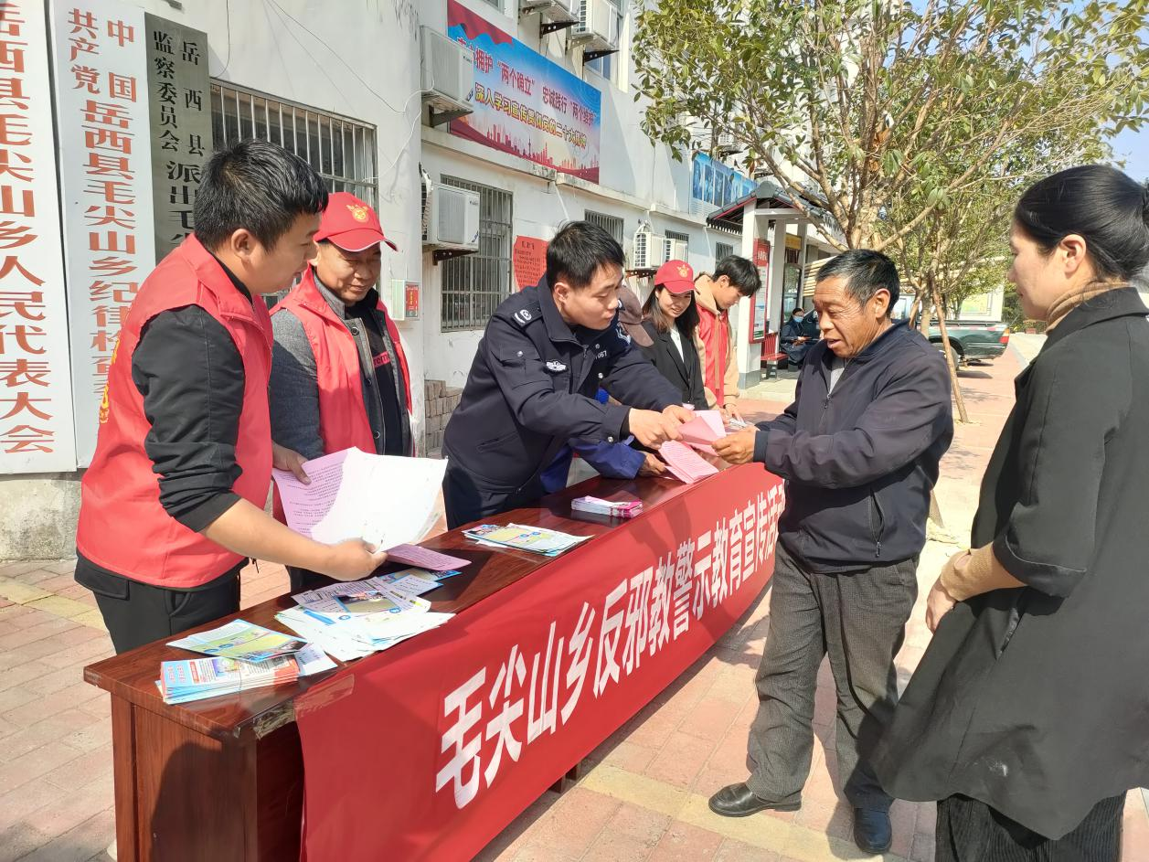 4月12日,毛尖山乡利用“网格+反邪教”的形式开展反邪教宣传活动,组织村干、网格员、护林员、志愿者等群体进村入户宣传反邪教知识,提醒广大老年人、留守儿童和妇女,遇到疑似邪教组织人员时,要做到“不听、不信、不传”,多与家人、亲属商量沟通,避免受到不必要的精神和财产损失。
