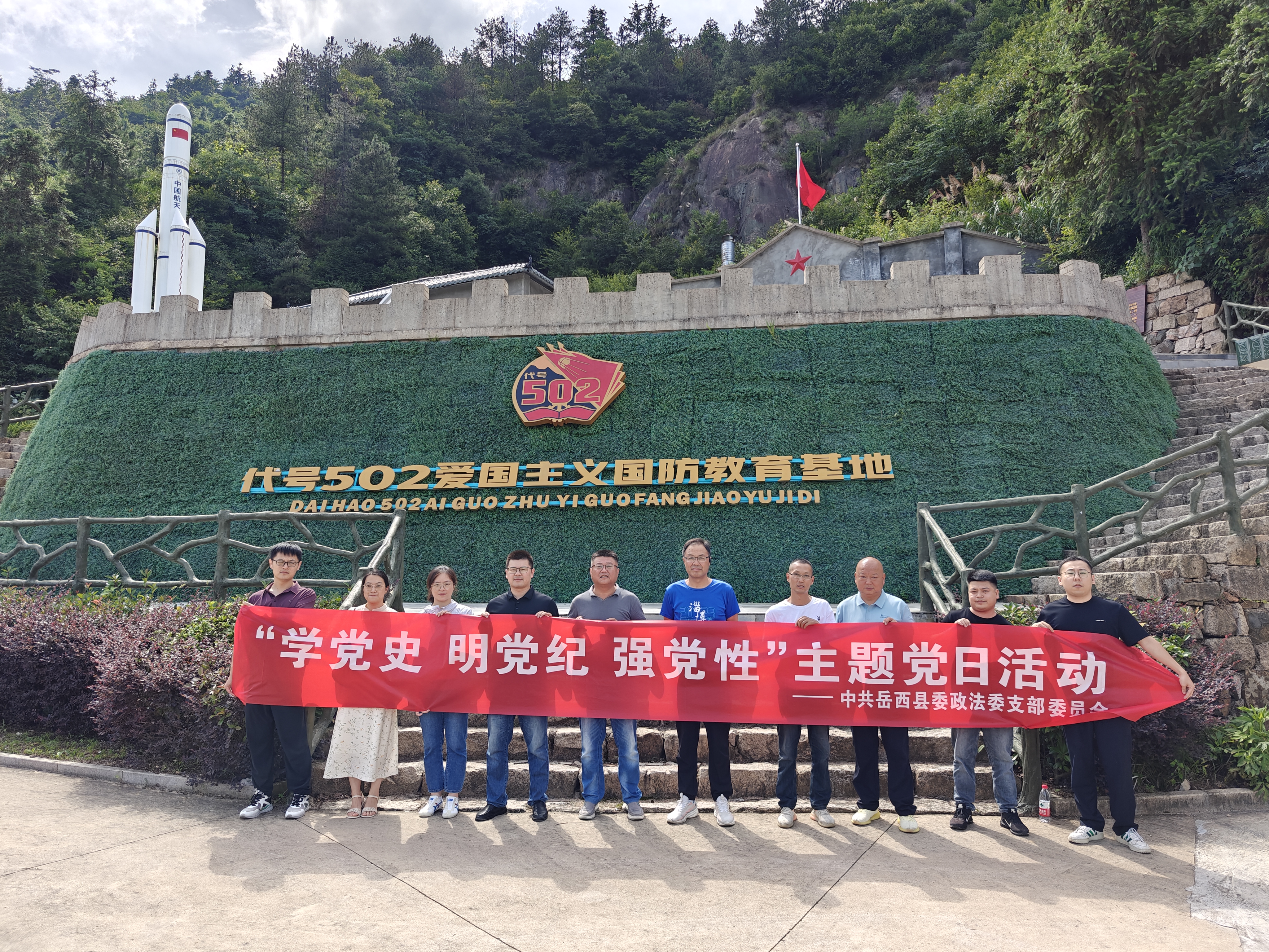 为传承红色基因,推进党史学习教育,7月19日,岳西县委政法委党支部组织全体党员、积极分子,走进大别山红色教育基地——代号502国防教育基地,开展“学党史 明党纪 强党性”主题党日活动。