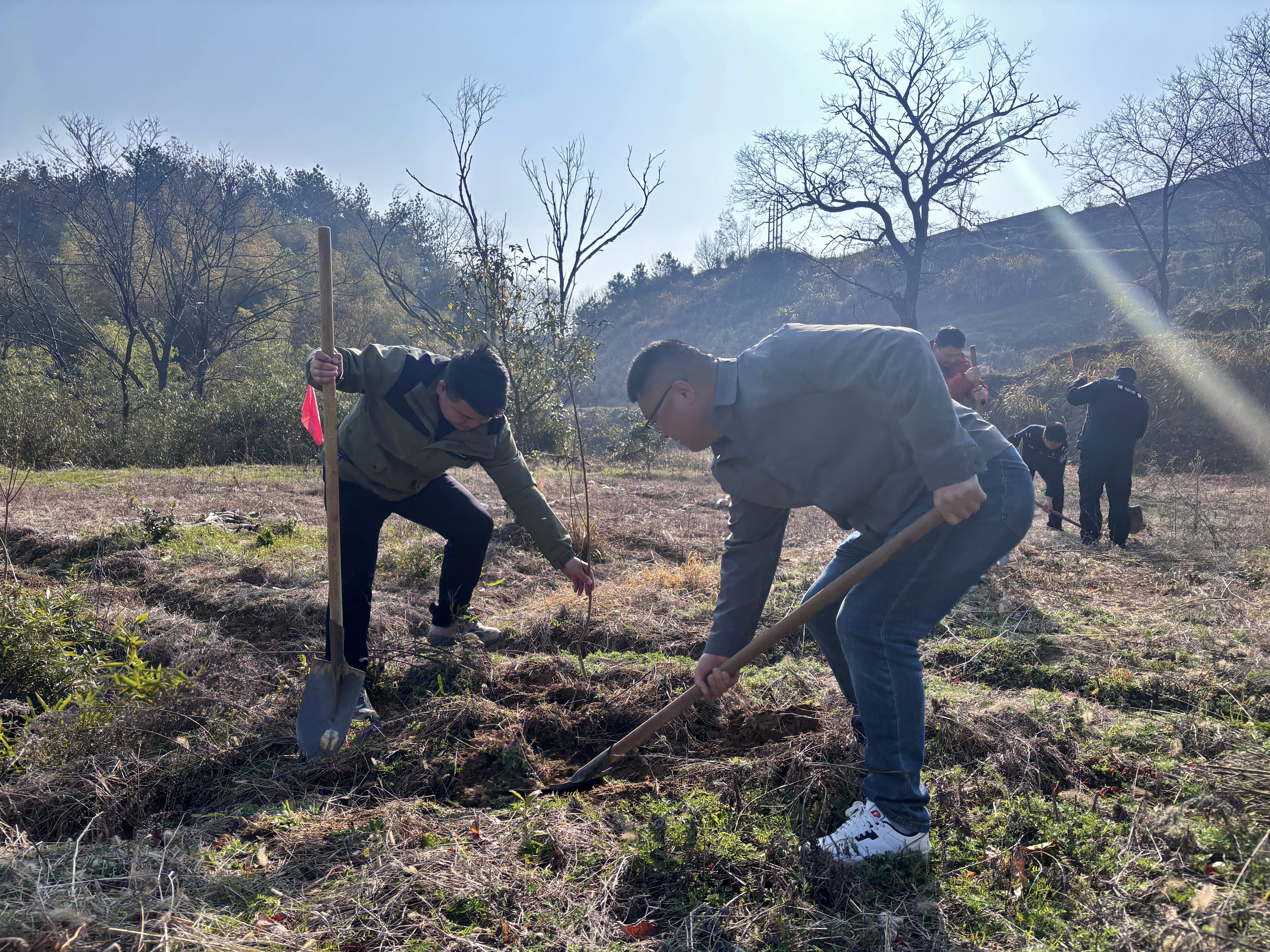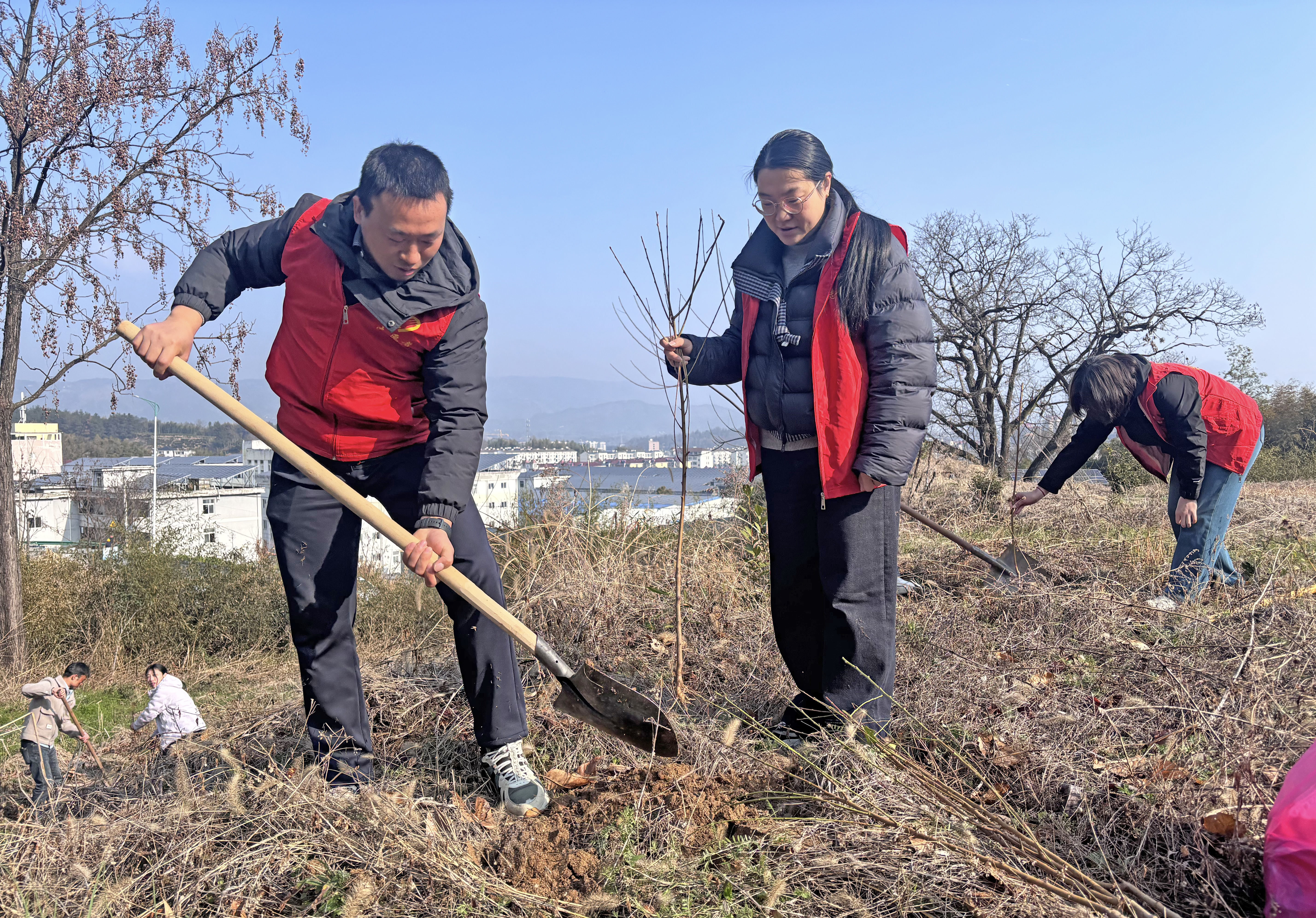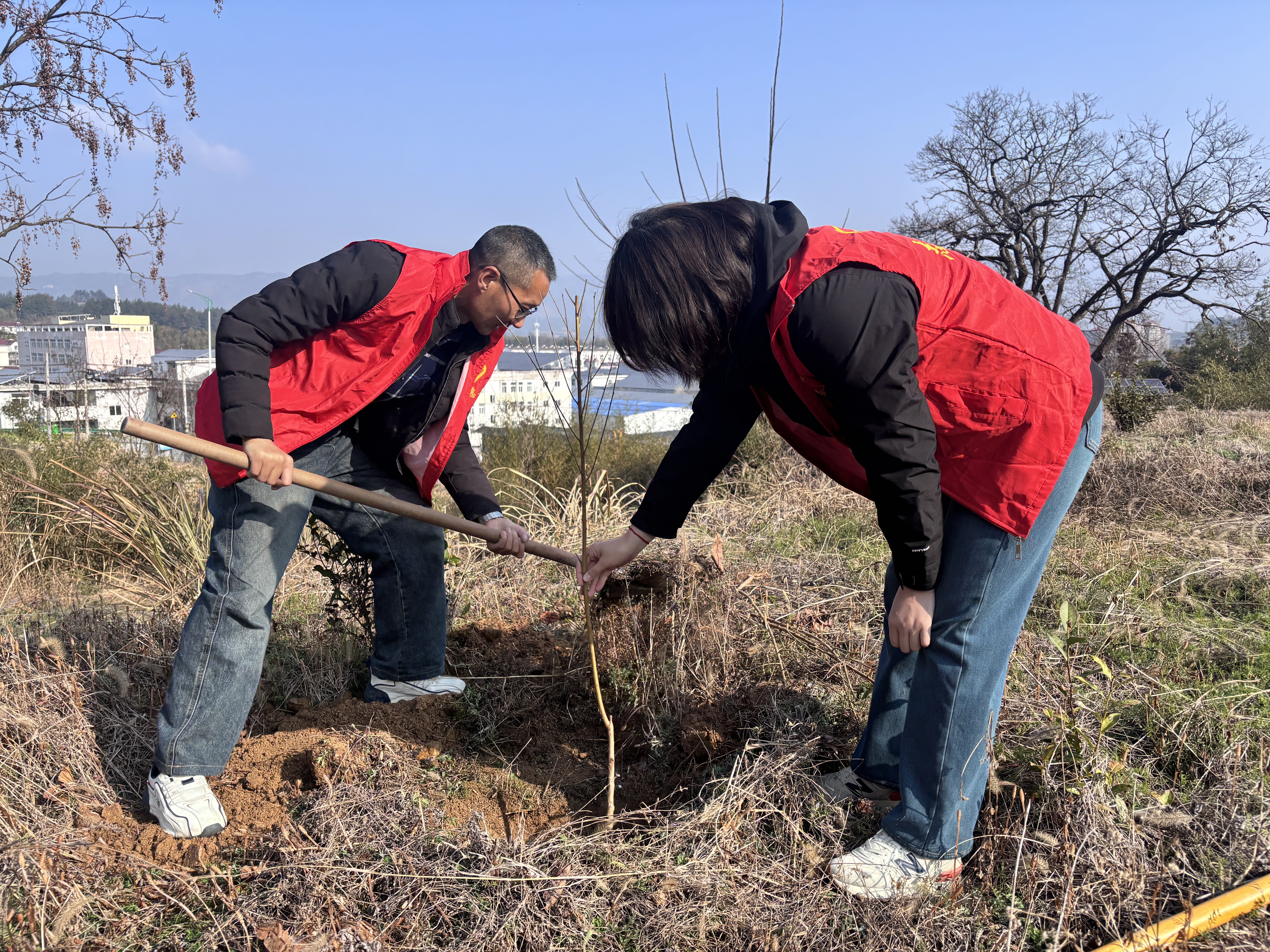 植树活动现场,党员同志们热情高涨、分工协作、配合有序,大家手持铁锹,挥锹铲土、扶苗定植、提水浇灌,每一个环节都认真细致、有条不紊。汗水挥洒之间,一棵棵新植树苗迎风挺立、整齐排列,为春日大地增添了蓬勃生机,种下了生态文明的希望种子。