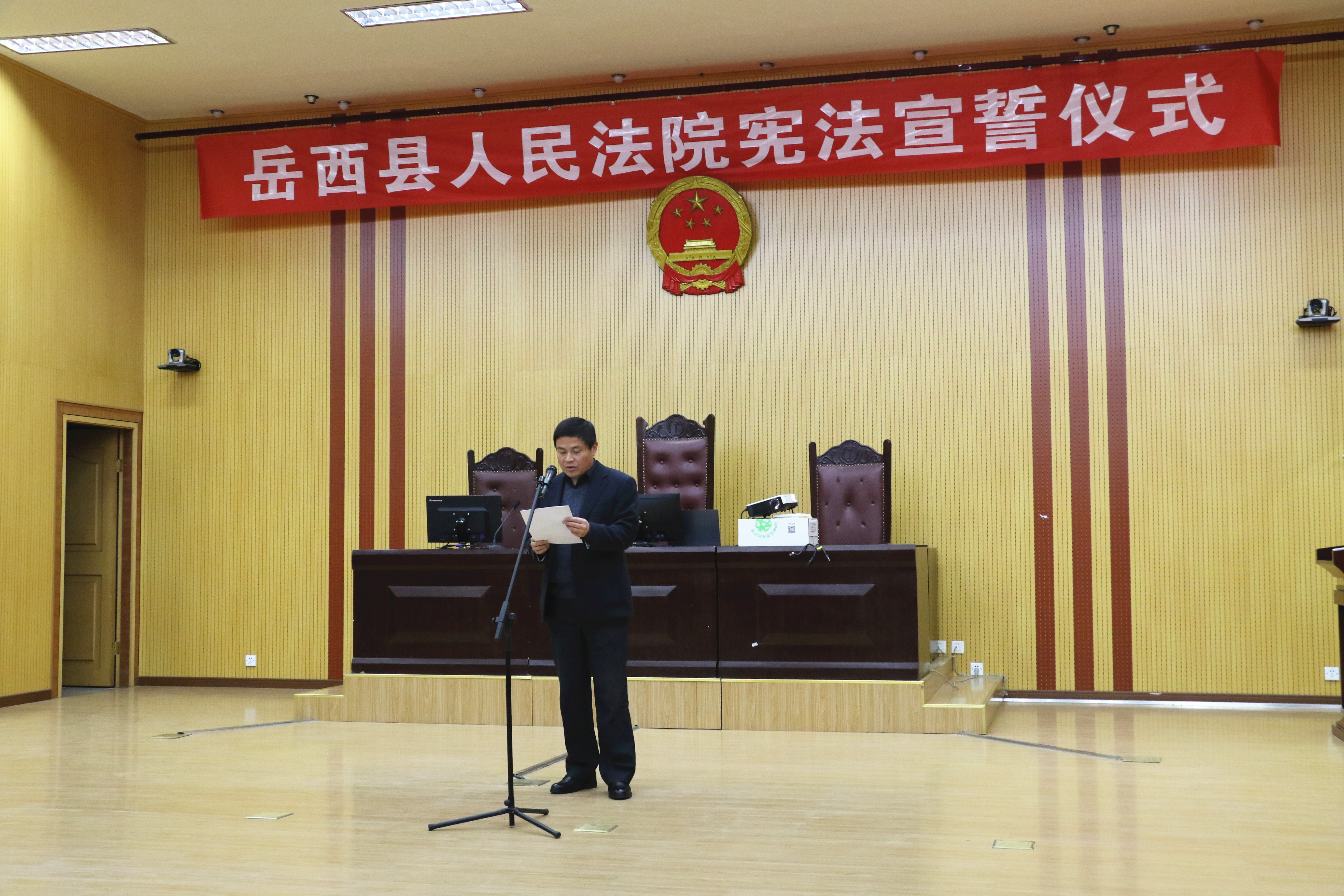 宣誓仪式结束后,岳西法院党组书记、院长徐杨发表讲话。他指出,审判职业是一项崇高的事业,法官是社会公平正义的守护者,人民陪审员在行使职务时与法官有同样的权力,必须具备坚定的政治信念、严明的纪律作风、高尚的职业道德,才能真正承担起公正司法、维护公平正义的神圣使命和重大责任。