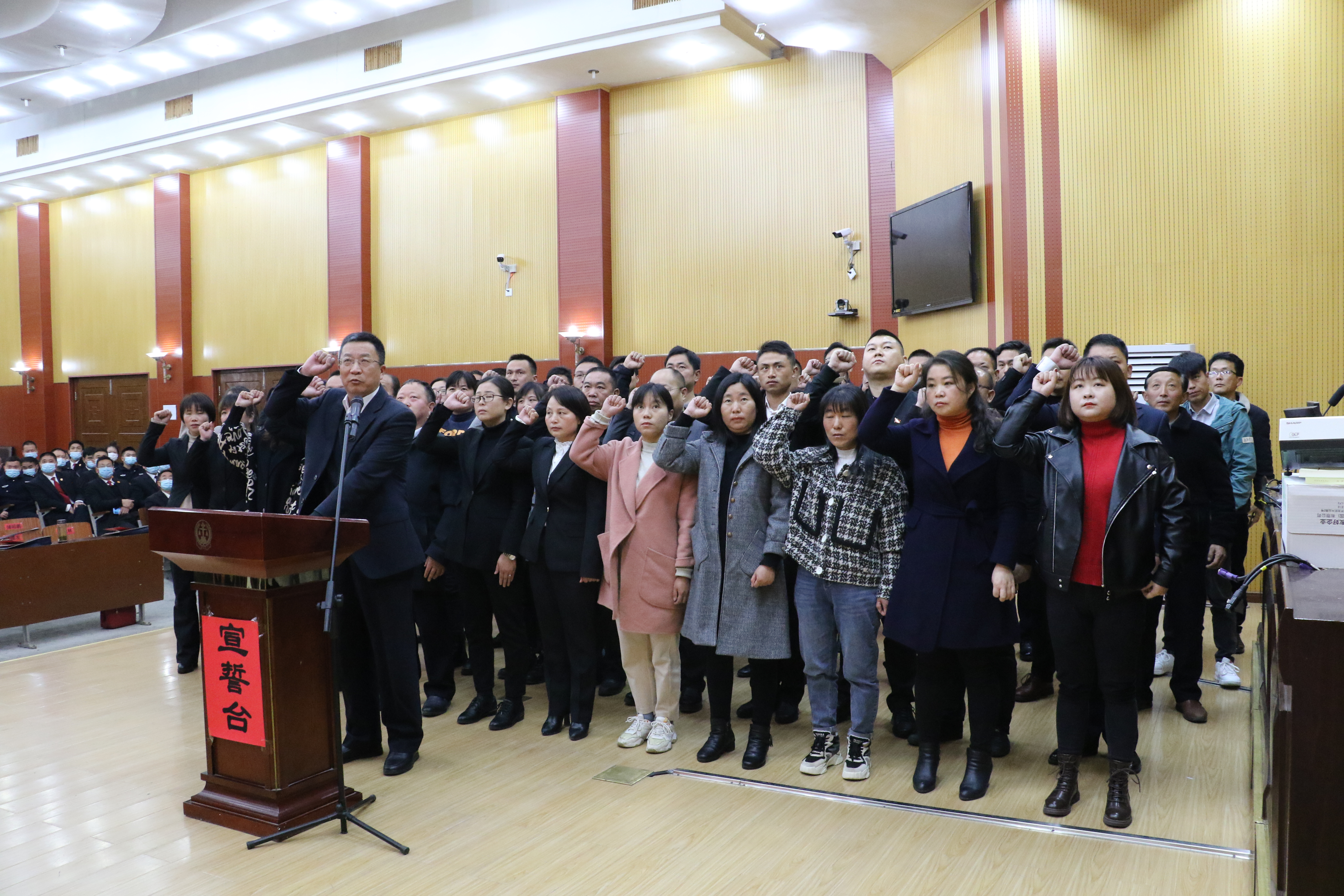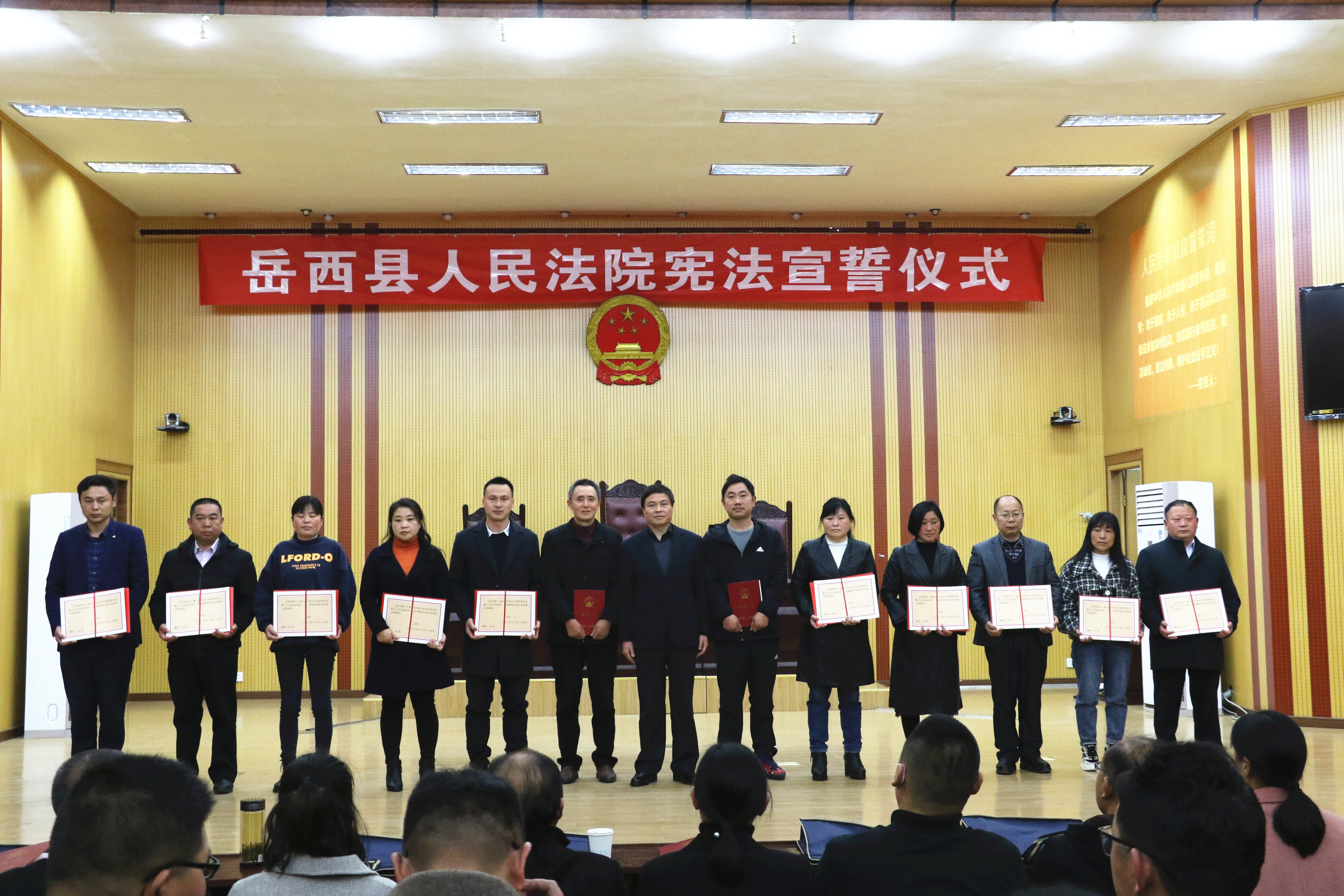 3月19日上午,岳西县人民法院举行人民陪审员宣誓仪式,县人大常委会副主任陈彬彬出席仪式并进行监誓,县人大监察和司法工委主任胡文革,县司法局党组成员、副局长肖和生出席会议。新任60名人民陪审员和法院全体干警参加会议。