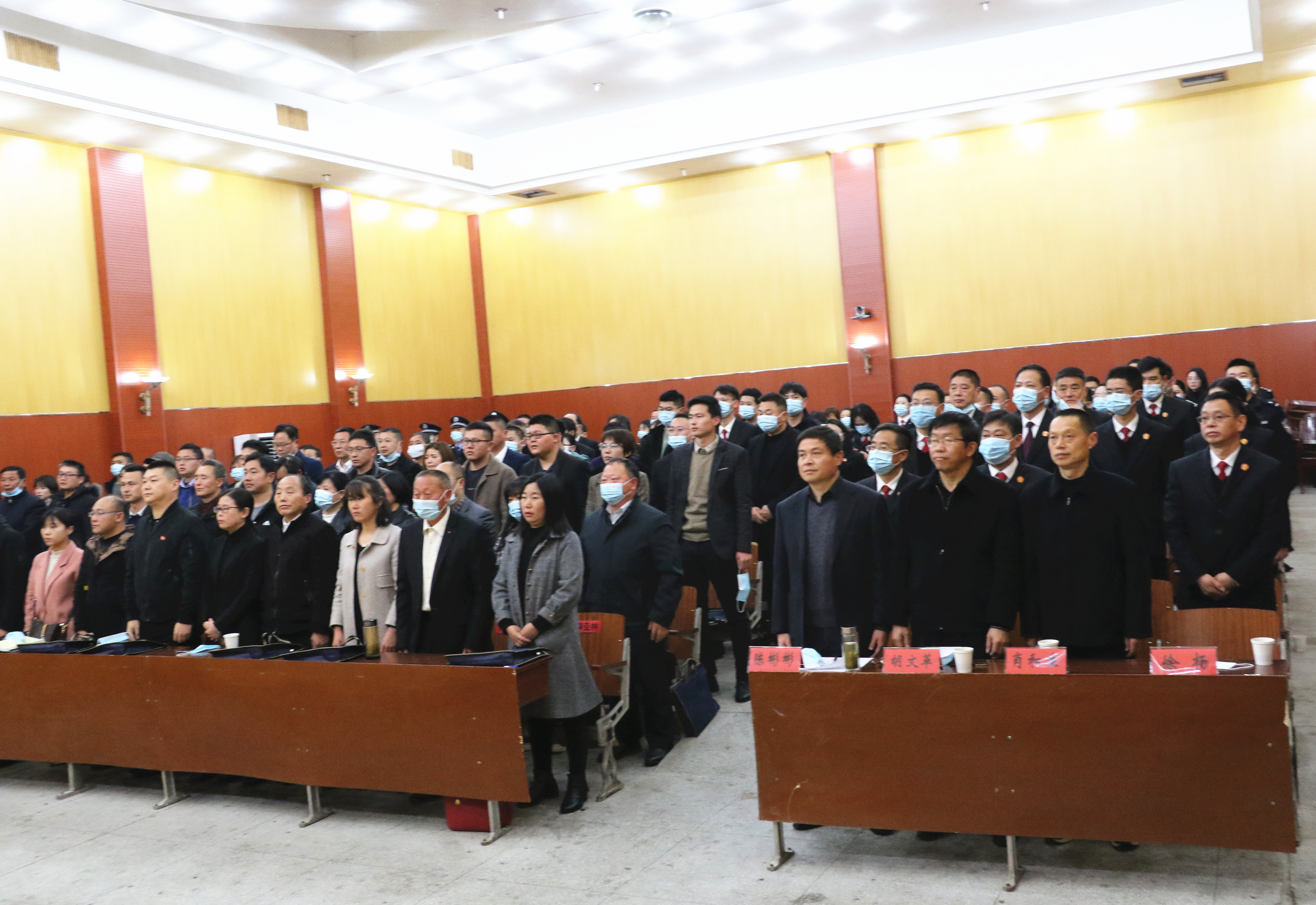 仪式在雄壮的国歌声中开始。陈彬彬宣读县人大常委会任命文件并为新任人民陪审员颁发任命书。