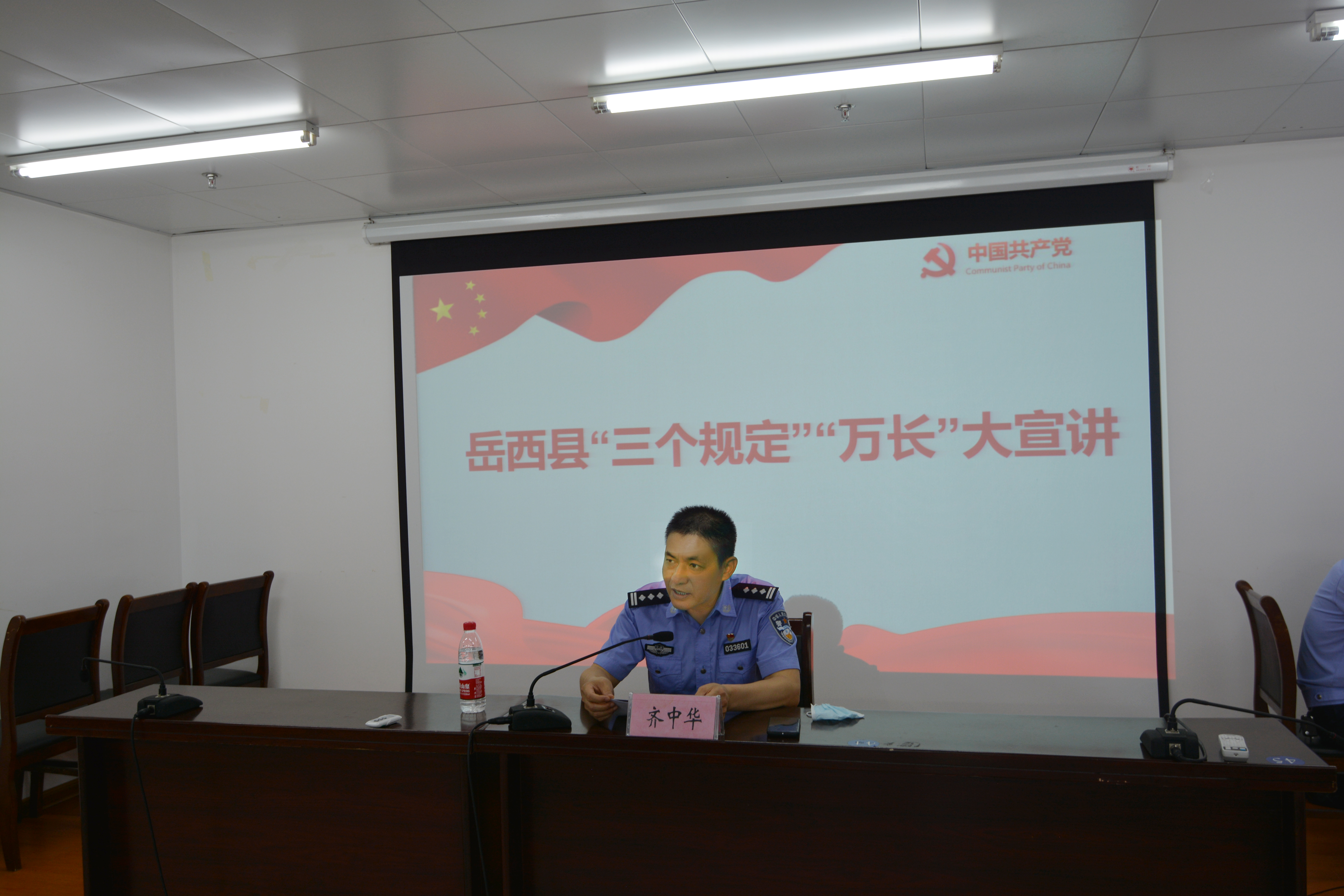 县政府副县长、县公安局党组书记、局长齐中华以“深刻领会贯彻“三个规定” 坚决筑牢思想防线”为题,从“‘三个规定’的出台背景、主要内容、重大意义”、“积极发挥‘三个规定’的立体作用,不断推进教育整顿走深走实”等方面,结合典型案例,进行了全面系统解读和宣讲。