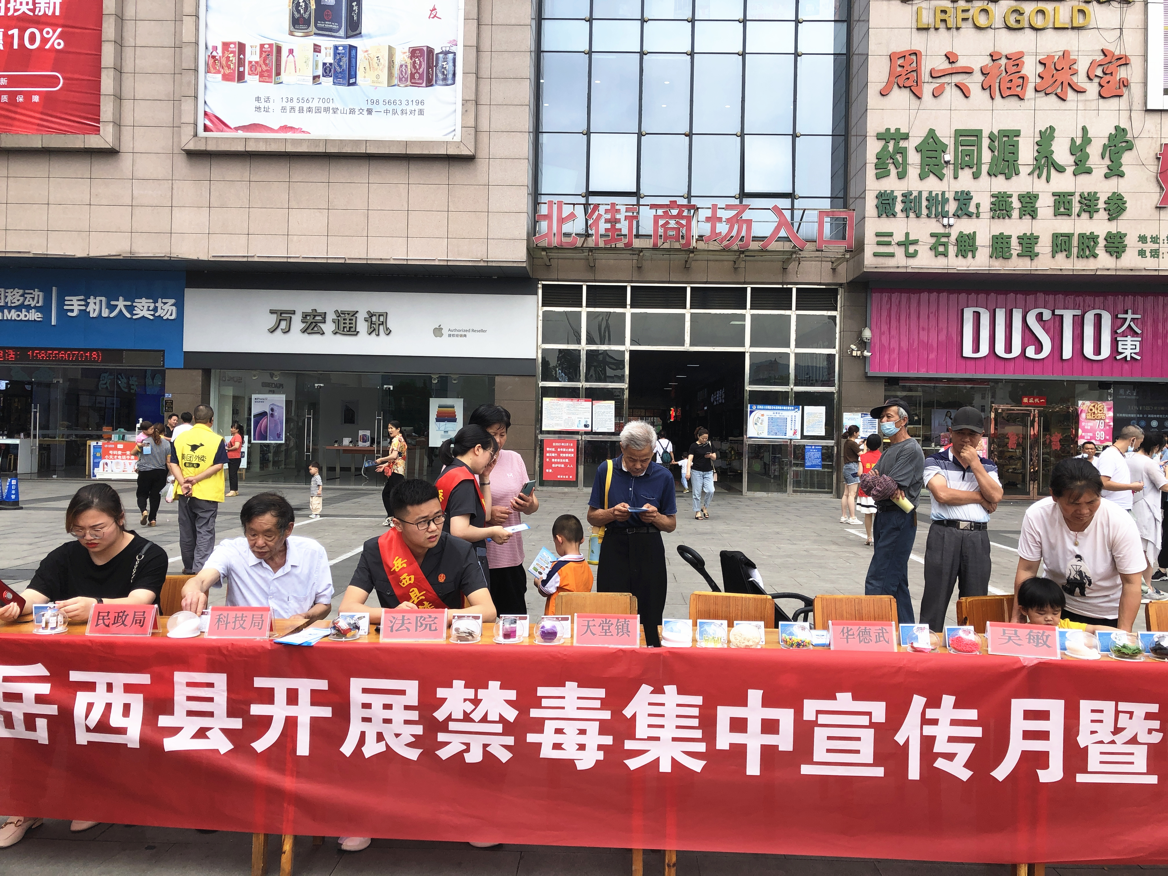 6月25日上午,岳西县人民法院积极参与县禁毒办组织的集中禁毒宣传活动,在天鹅广场,发放宣传单页,详细向过往群众展示新型毒品样品和危害,并介绍打击毒品犯罪重要性。