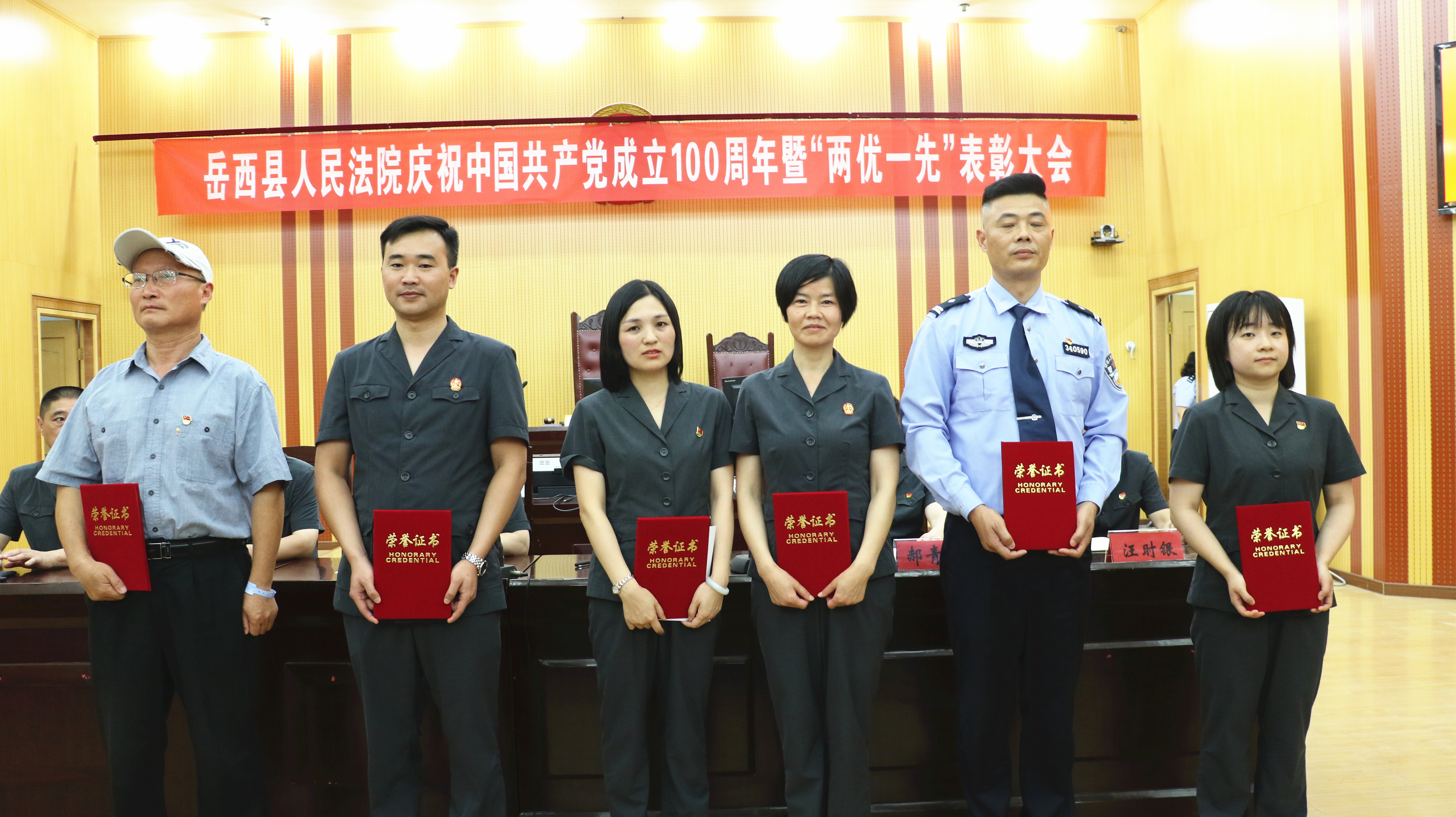 为庆祝中国共产党成立100周年,大力表彰先进,树立典型,6月28日上午,岳西县人民法院召开庆祝中国共产党成立100周年暨“两优一先”表彰大会,全体党员干警参加。
