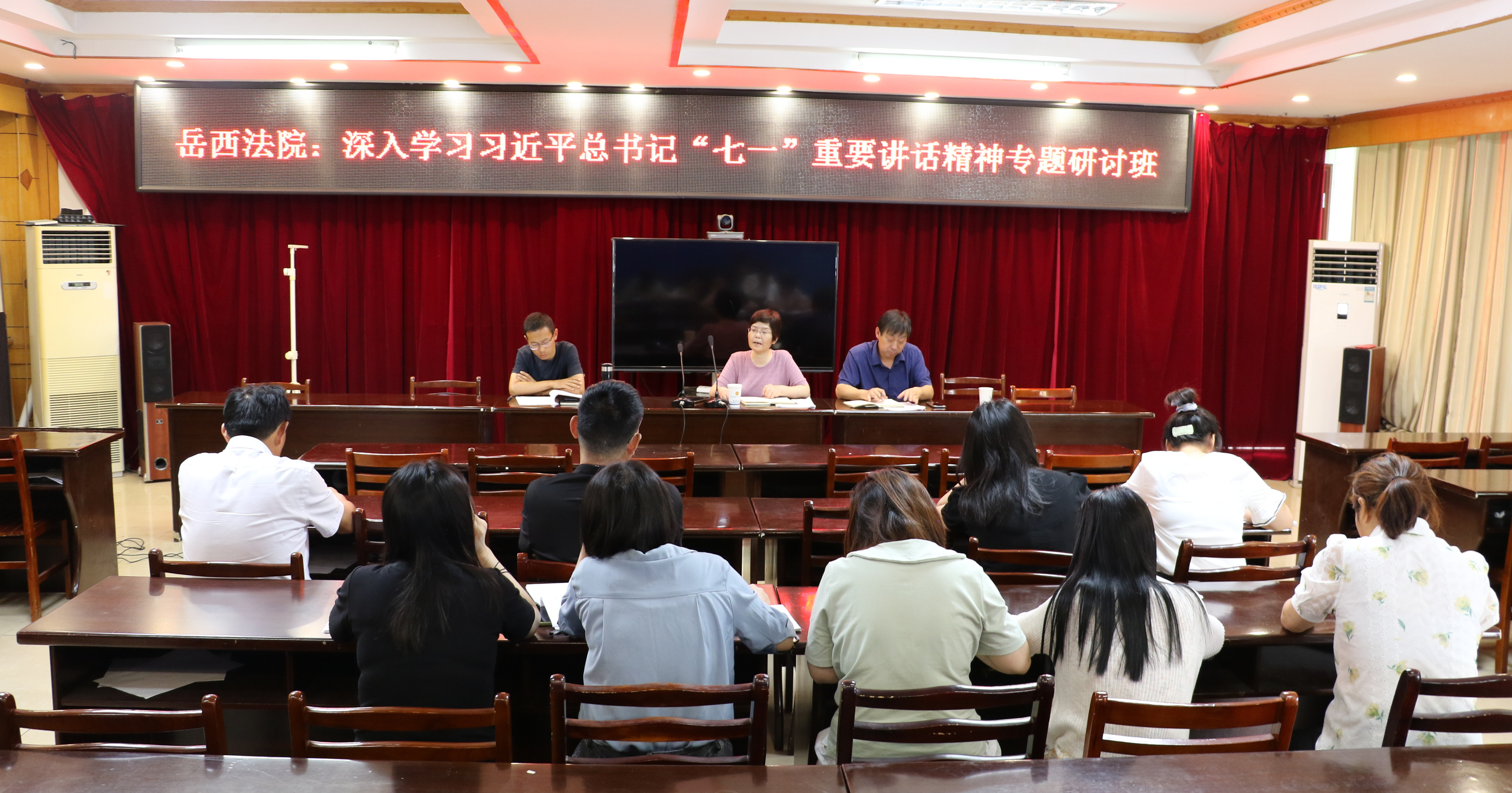 8月17日,岳西县人民法院举办深入学习习近平总书记“七一”重要讲话精神专题研讨班。党组成员、副院长周萍领学习近平总书记“七一”重要讲话精神,班子成员和干警参加学习研讨。