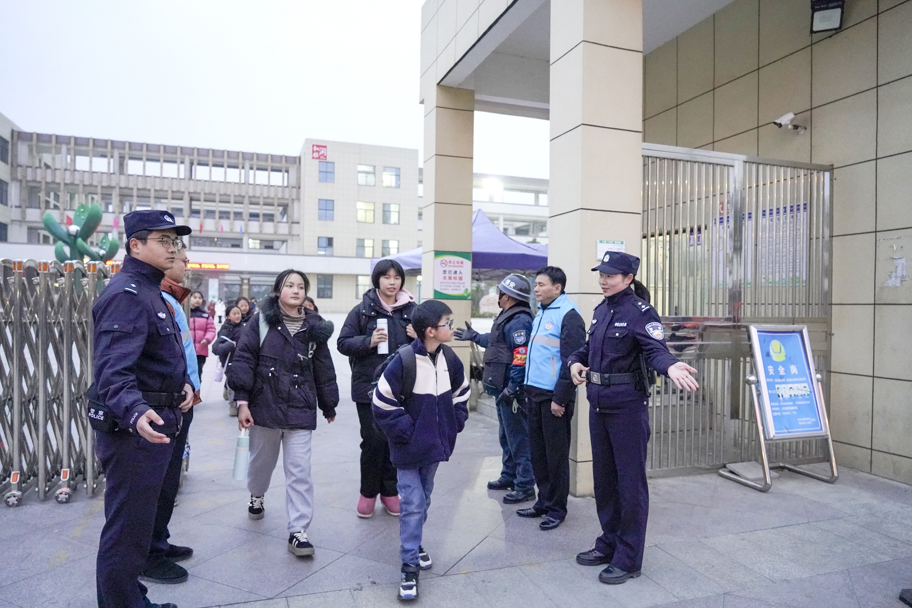 不止于日常护学,“警保联勤”的职能延伸至校园安全全链条。“护学岗”警力与保安员不仅守护上下学高峰,还肩负校园部分安全巡查、校内突发事件先期处置等任务。每逢高考、中考等重要节点,以及大型校庆、运动会等涉校重大活动,宿松县公安局统一调度驻校保安员深度参与互助巡防、联勤联防、应急处置,形成警保协同作战的强大合力。