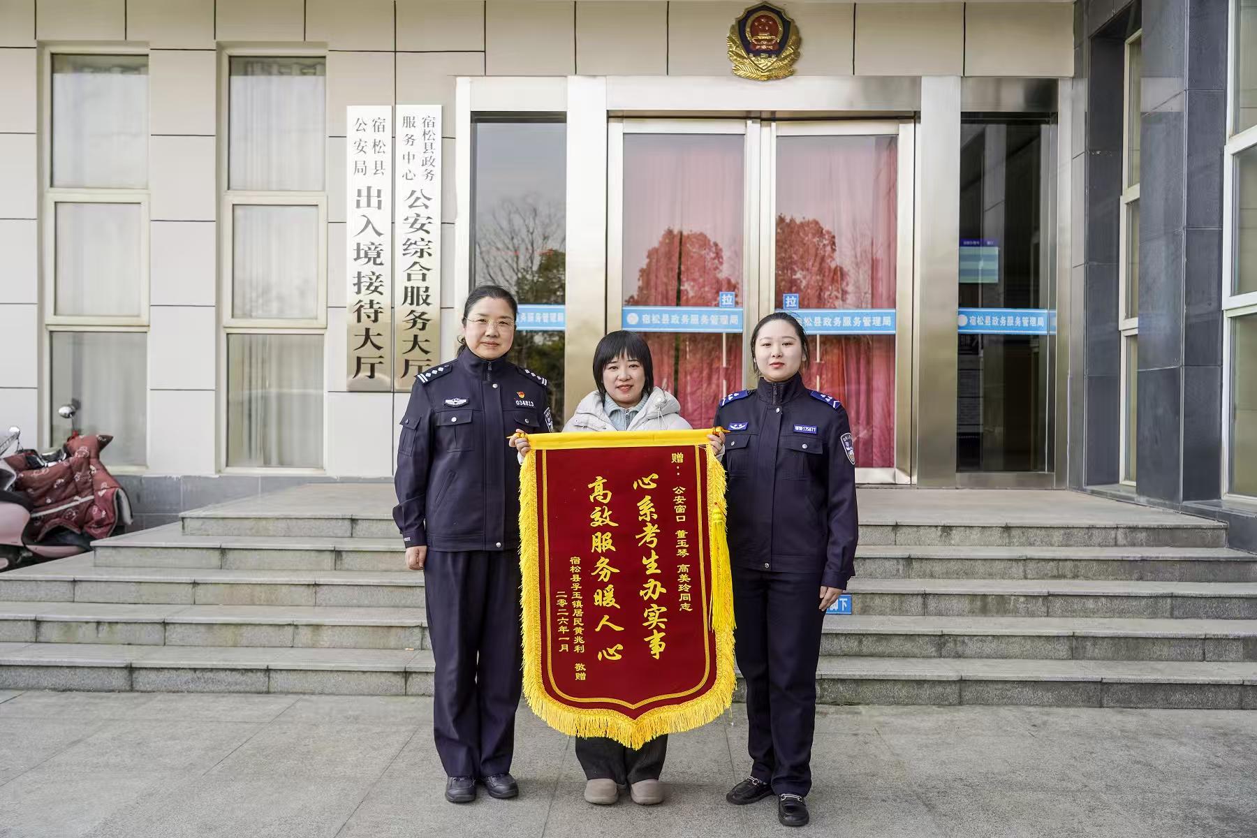 1月22日,孚玉镇居民黄女士向该中心负责人董玉琴及工作人员高美玲送上锦旗,致谢其连夜为赶考儿子补办临时身份证。据悉,黄女士儿子1月17日需参加普通高中学业水平合格性考试,1月16日半夜发现身份证遗失,窗口负责人核实情况后,立即启动紧急绿色通道,连夜办结业务,确保考生顺利参考。这是该中心针对就医、考试等特殊需求推出“及时办”服务的具体实践。