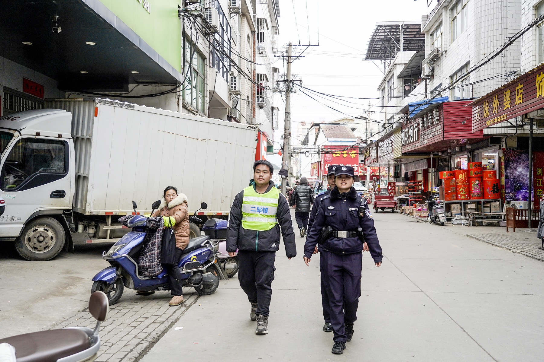 “以前逢年过节街上堵得挪不动步,现在民警领着、网格员盯着、劝导员护着,买卖做得踏实,逛得也舒心!”1月28日,在安徽省宿松县二郎镇二郎街经营土特产店的王老板一边麻利地打包商品,一边对前来巡查的民警说道。这份安心背后,是宿松县公安局二郎派出所在辖区二郎街创新推行的“民警+网格员+交通劝导员”“三员”联动勤务模式结出的硕果。2025年以来,二郎街矛盾纠纷化解成功率100%,涉交通、赌博警情分别同比下降37.3%、50%,侵财案件、街面斗殴、店铺火情实现“零发生”,千年古镇在三方协同守护中延续着繁盛烟火。