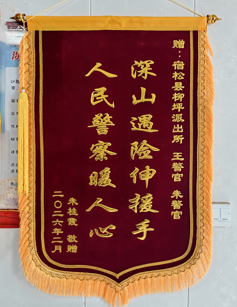 3月2日,宿松县公安局柳坪派出所收到一封从上海远道而来的感谢信,还有一面印着“深山遇险伸援手 人民警察暖人心”的鲜红锦旗。寄信人朱女士在信中写道:“这次返乡之行,不仅让我们领略了家乡罗汉尖景区的秀丽风光,更让我们深切感受到了家乡公安民警的责任担当与为民温度……”
