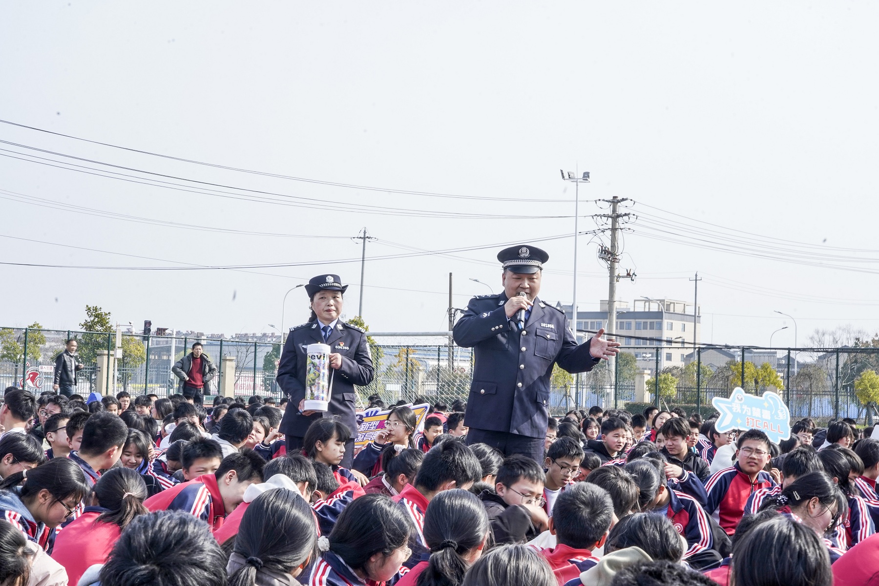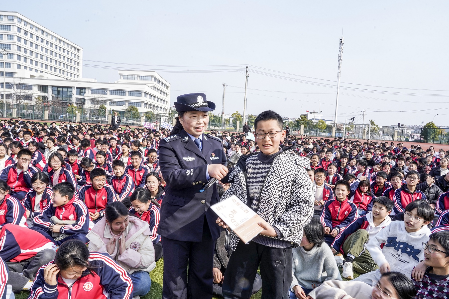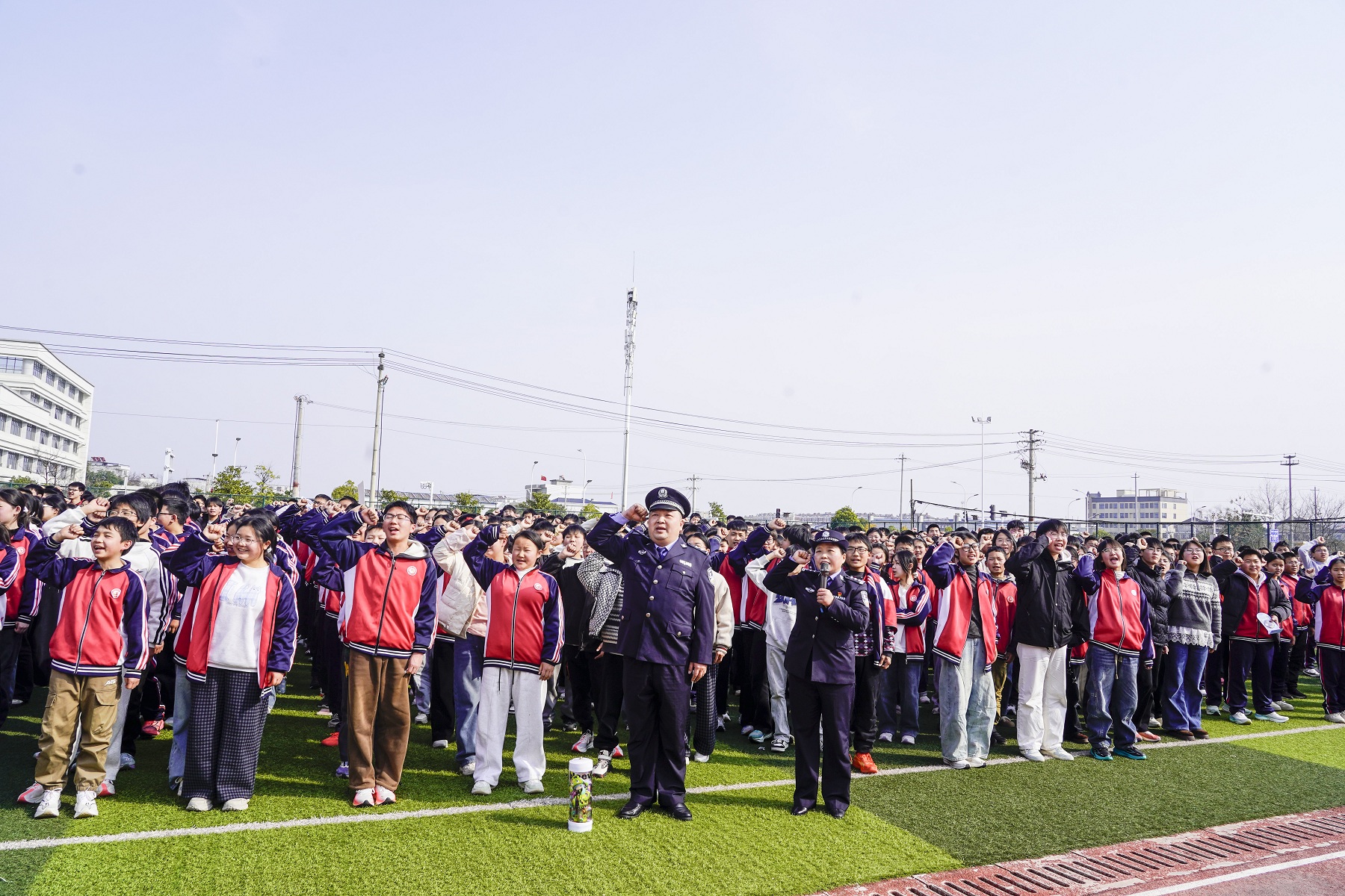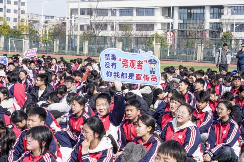 “我庄严宣誓:远离毒品,珍爱生命,与毒品作坚决斗争!从我做起,以抵制毒品为荣,以吸毒贩毒为耻……”活动尾声,两名民警站在队伍前面,带领全体学生高举右手,铿锵有力的禁毒宣誓声回荡校园。同学们眼神坚定,齐声宣读誓词,把抵制毒品的决心转化为成长答卷,在心中种下“青春无毒”的种子。