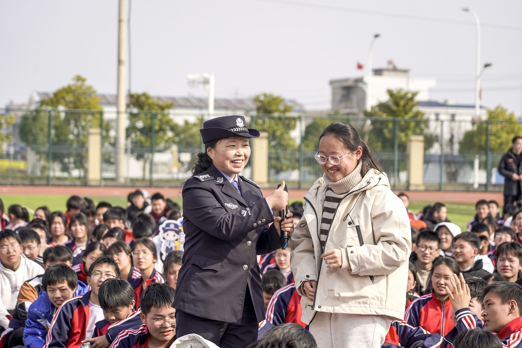 “哪个法令第一次明确保护青少年不受毒品危害?”“合成毒品主要影响人体哪个器官?”“虎门销烟从哪一天开始?”有奖知识问答环节点燃全场热情。同学们踊跃举手、积极抢答,民警结合题目延伸讲解禁毒法律法规与历史知识,现场掌声不断、互动热烈。通过问答形式,既检验了学习成果,又让禁毒知识在轻松氛围中入脑入心。