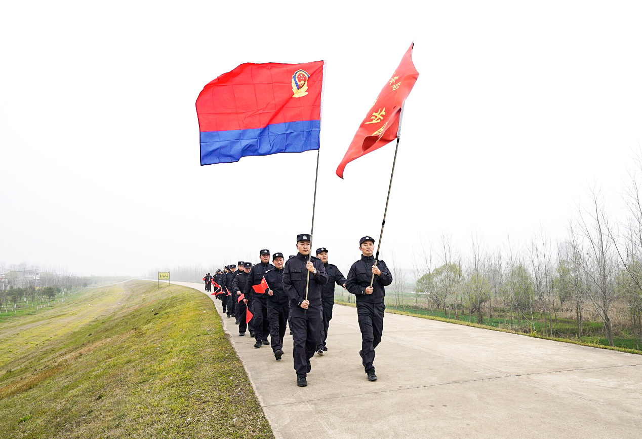 上午9时整,随着一声铿锵有力的“出发!”,三支健步队伍整装齐发、同步启程。警旗猎猎映初心,队旗猎猎迎风展,走在队伍最前方的队员高举警旗、“砺警健步队”和“凝聚警心 活力警营”队旗,全体参与人员手持小国旗,步伐坚定、精神抖擞,整齐的队伍穿行在山间、堤岸与丘陵之间,藏蓝身影与春日风光交相辉映,气势十足。