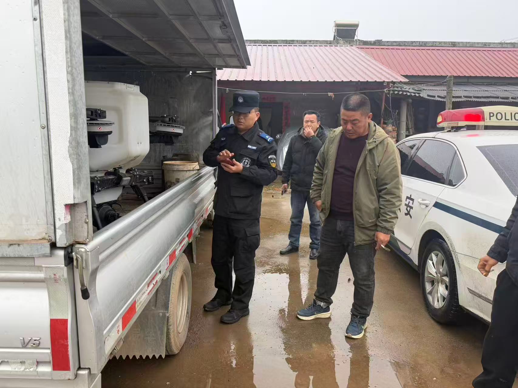 服务现场,田埂边、合作社院子里,民警们围着无人机逐一核验信息、指导操作。农户们围在一旁,脸上满是欣喜。“我们天天在田里忙,根本抽不出空去城里办手续,本来还担心无人机没法正常飞,耽误春耕进度,没想到警察直接把服务送到地头,几分钟就帮我们弄好了,太贴心了!”华亭镇种粮大户陈金祥握着民警的手连连称赞,脸上的疲惫一扫而空。
