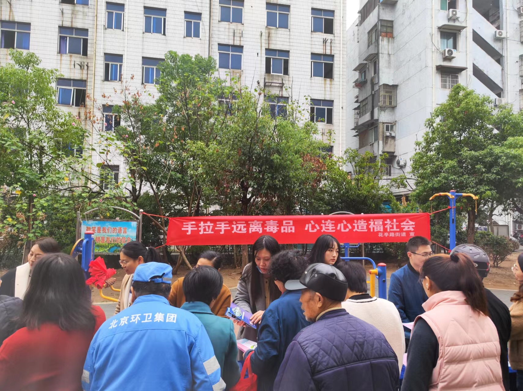 为广泛传播“健康人生、绿色无毒”理念,营造浓厚的禁毒宣传氛围,近日,花亭路街道充分利用春节期间外出务工人员集中返乡、群众探亲团聚良好契机,联合湖心社区在滨湖苑小区广场开展“手拉手远离毒品,心连心造福社会”主题宣传活动。